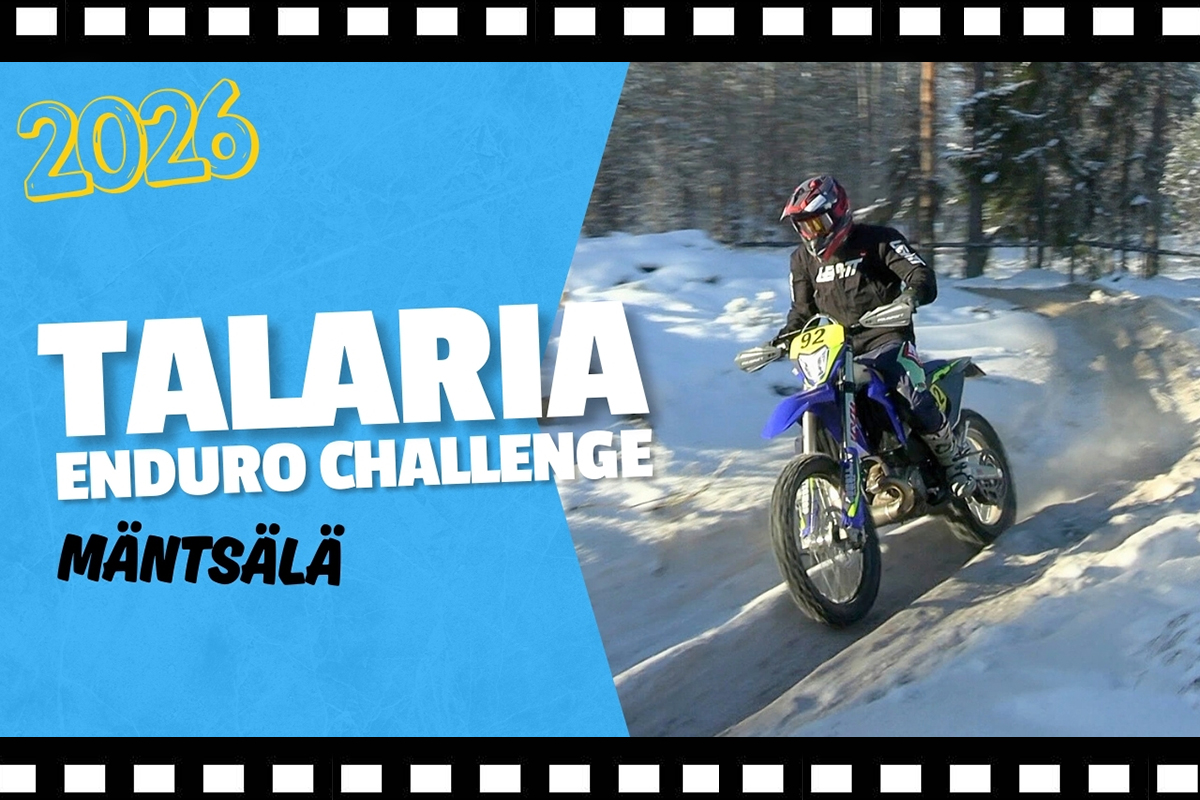 Koostevideo yleiskilpailun kärjen menosta lauantaina Talaria Enduro Challenge -kisassa.