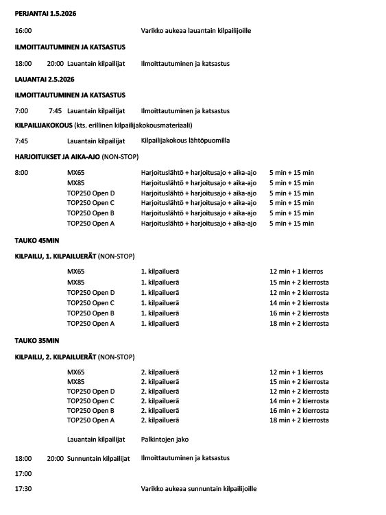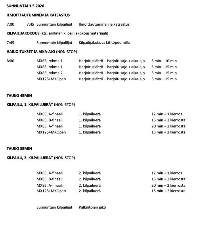 Hyvinkään MX-liigan aikataulut