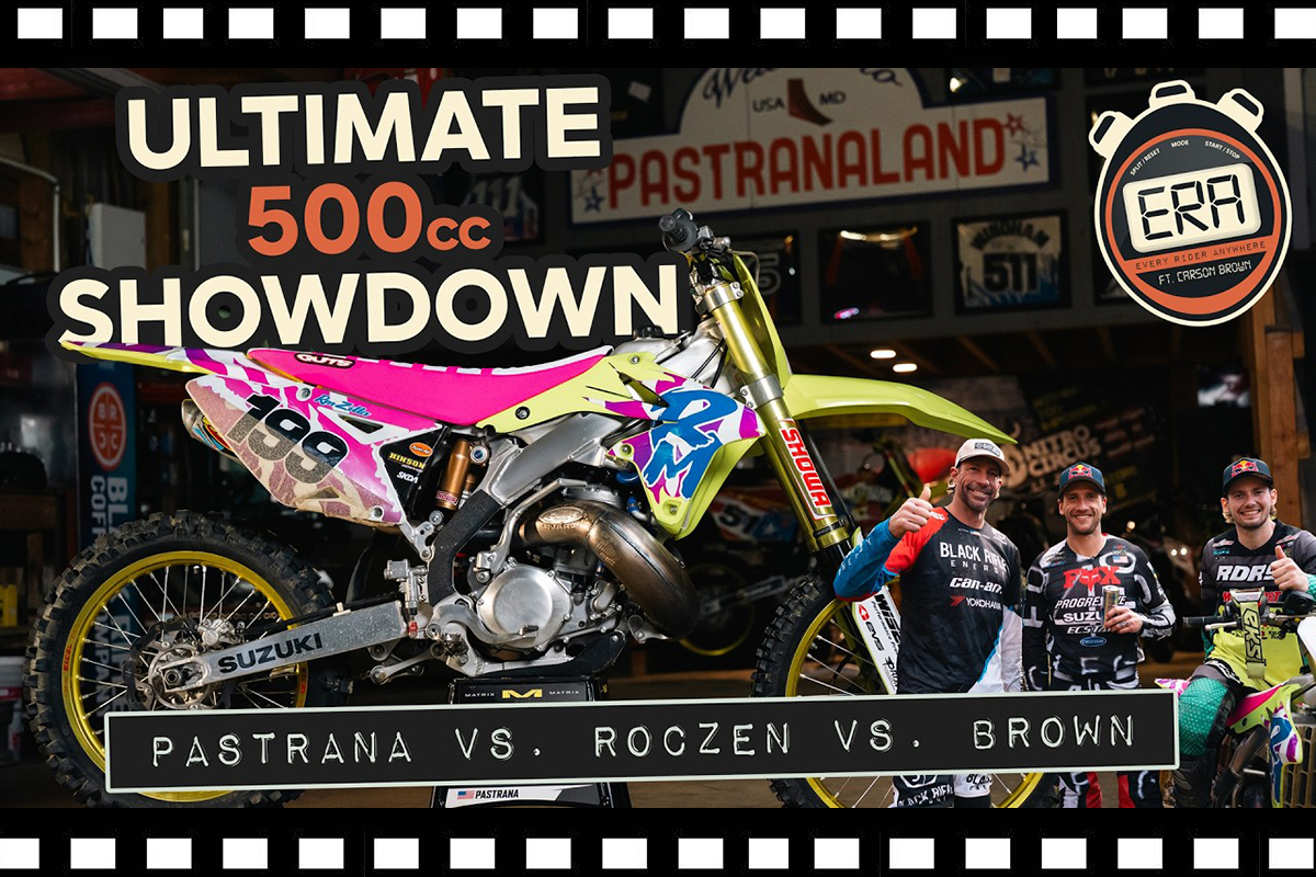 Travis Pastrana haastaa Ken Roczenin ja Carson Brownin 500-kuutioisella Suzukilla.
