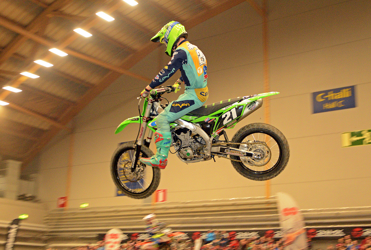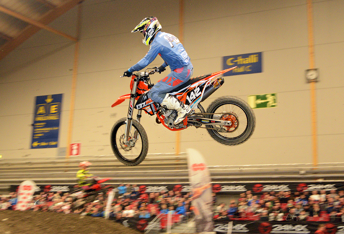 Toisessa välierässä Jere Haavisto otti heikon lähdön mutta teki heti kovaa nousua. Haavisto kuitenkin kolaroi ja kaatui, pudoten ulos kärkikolmikosta. Erän voiton vei Matthias Jörgensen ja kolmoseksi nousi hyvällä ajolla Juuso Matikainen, joka ilmoittautui näin myös illan kärkikamppailuun.