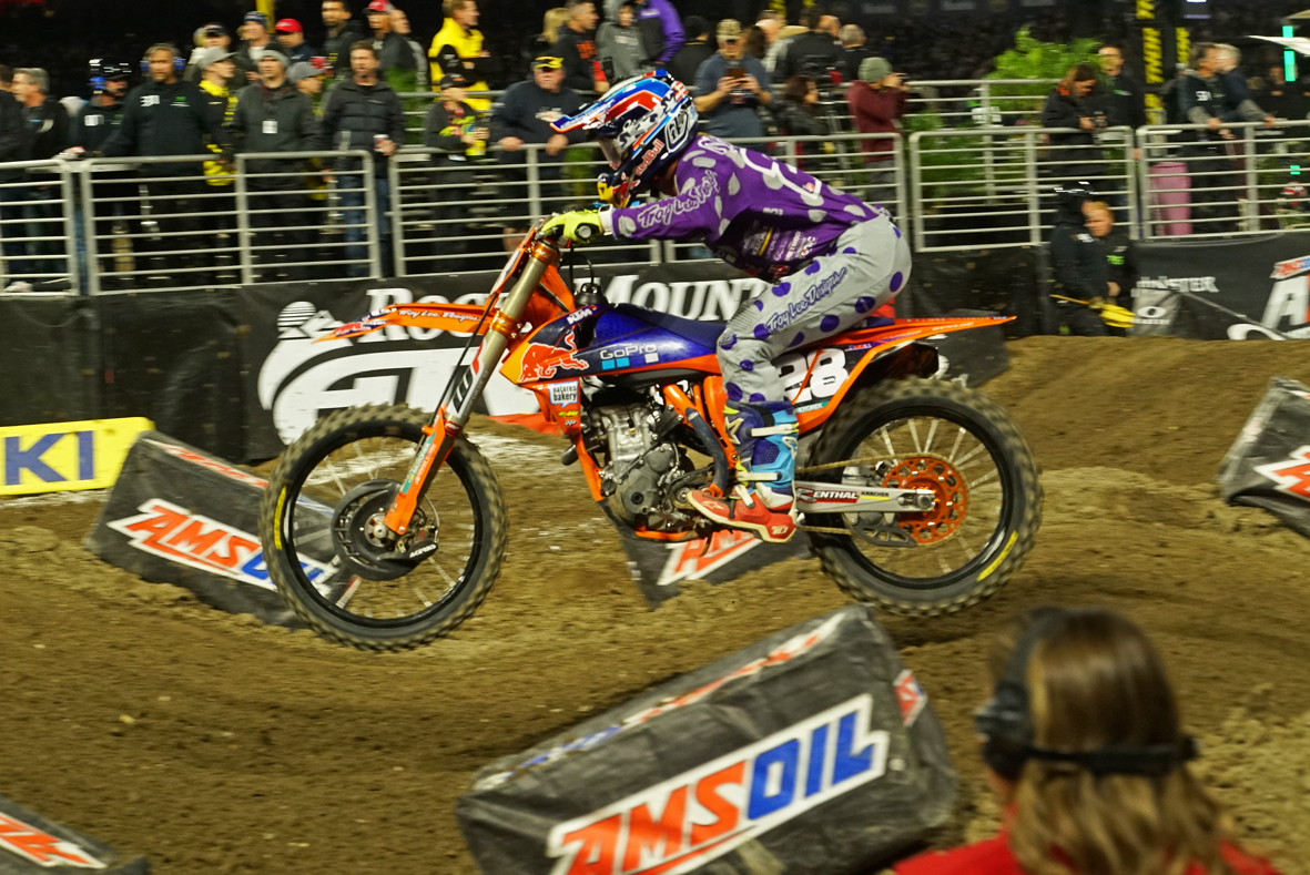 Joe Savatgy johtaa iltaa yhteispisteissä pikkuluokassa, Craig on toisena ja McElrath kolmosena. Ennakkoon isoja odotuksia niskassaan kantanut Aaron Plessinger ei vieläkään pystynyt podiumvauhtiin ja erän jälkeen mies oli kiukkuinen. Hallitseva mestari Justin Hill on kaukana viime kauden kyydistään, keikkuen erissä kympin kieppeillä. Hill saattaa jo odotella lähinnä kauden päättymistä ja sopimuksensa mukaista siirtymistä isoon luokaan nykyisen tiiminsä JGR:n kalustolla.