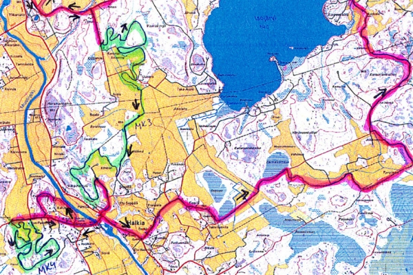 Kilpailun aikataulua on hiukan väljennetty MK 2:lta alkaen molempina kilpailupäivinä. Siirtymää MK 1/5:lle on muutettu hiukan myös. Maaliin ensimmäisiä kilpailijoita odotetaan molempina päivinä n. klo 14. Liitteenä kartta ihanneaikatauluineen.