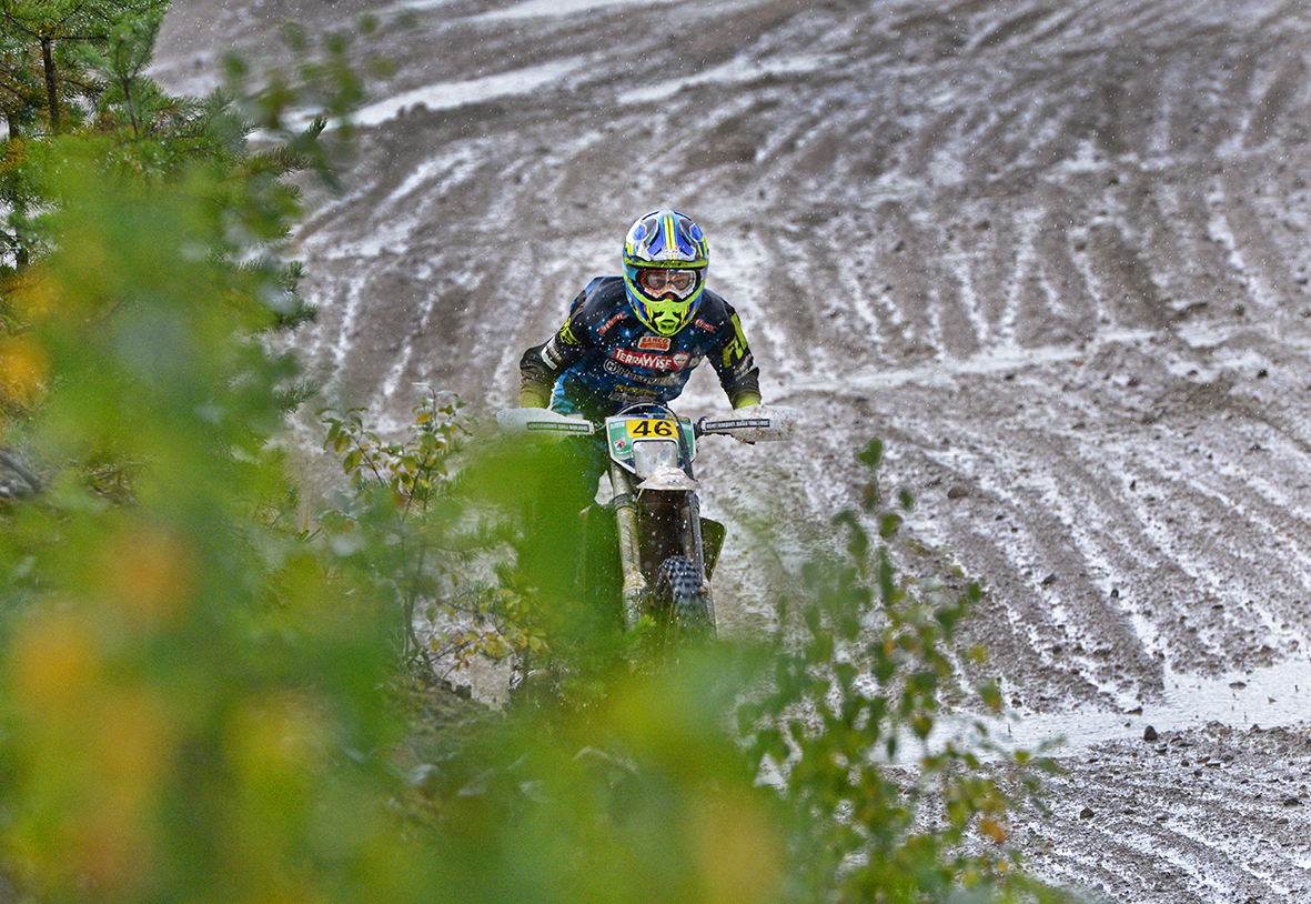 Vettä ja kuraa yllin kyllin tarjoillut Kärhänlenkki sai kovan sadekuuron myötä vielä lisää vettä. Sankkana ryöpynnyt sade ei kuitenkaan tuntunut hidastavan kärkiparin vauhtia kisan kääntyessä loppuaan kohti. Eemil Pohjolan johto Eero Remekseen nähden oli noin 18 sekuntia kun neljä pätkää oli ajamatta. Kolmanneksi kirinyt Henric Stigell on kärkeä perässä yli puolitoista minuuttia.