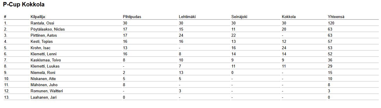 - Ajo tuli kuitenkin heti selkärangasta, ihan kuin ei olisi taukoa ollut ollenkaan. Tuloksen kannalta ei olisi voinut paremmin mennä. 16 erää ja 16 voittoa. Pohjanmaa Cup on erinomaista treeniä ja valmistautumista SM-kisoihin, kun pääsee ajamaan kilpaa samalla kaavalla ja samojen kilpakumppaneiden kanssa kuin SM-sarjassakin. Se on vähän kuin kenraaliharjoitus, Rantala totesi.