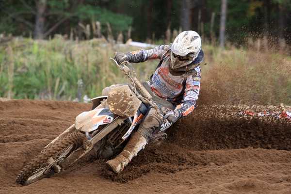 - Tänään ajaminen oli väkisin vääntämistä. Olin kuumeessa viikko ennen Orimattilan kilpailua ja ajot jäi todella vähille silloin. Sitten Orimattilan jälkeen ajattelin, että nyt pääsee ajamaan rauhassa viikon ajan. Sitten tulikin vettä viikon ajan kuin saavista kaatamalla ja radat menivät huonoon kuntoon. Pari kertaa kävin ajamassa, mutta ei siitä ajamisesta liejussa oikein mitään tullut. Se sitten kostautui täällä, eikä ajo ollut rentoa. Täällä molempien erin ensimmäisellä kierroksella oli pientä ohjelmaa. Toisessa erässäkin joku ajoi minun eteen ja ajauduin radan viereiseen vesiojaan. Kaikenlaista pientä ohjelmaa oli.