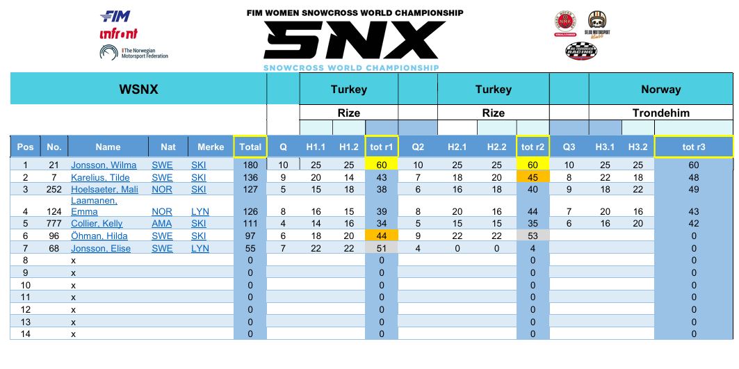 Naisten MM-sarjassa mestaruuden vei Ruotsin Wilma Jonsson. Suomen Emma Laamanen sijoittui neljänneksi, jääden harmittavasti vain yhden pisteen päähän MM-pronssista.