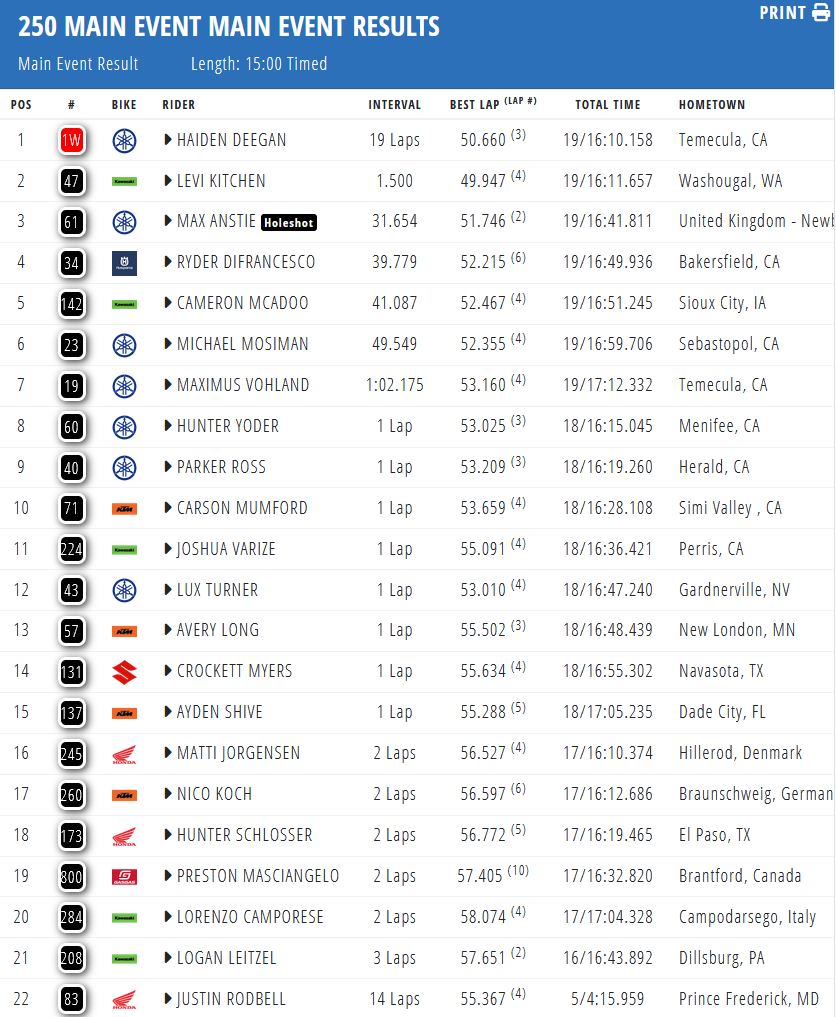 250-kuutioisissa Haiden Deegan ajoi jälleen voittoon ennen Levi Kitcheniä ja Max Anstieta.