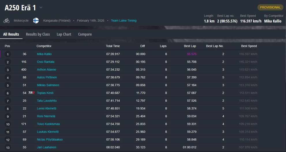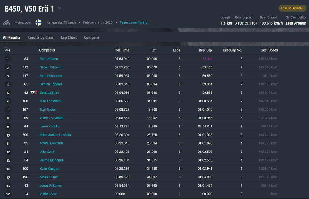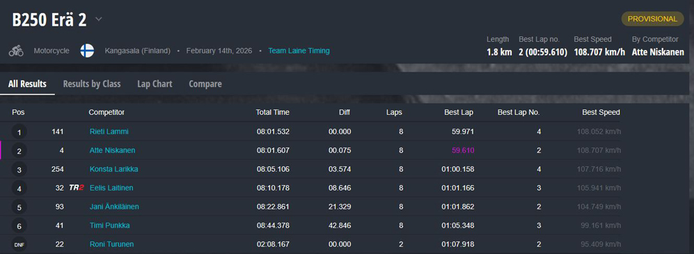 Jääradan SM-sarja käynnistyi eilen Seinäjoella. Tässä päivän tuloskatsaus.