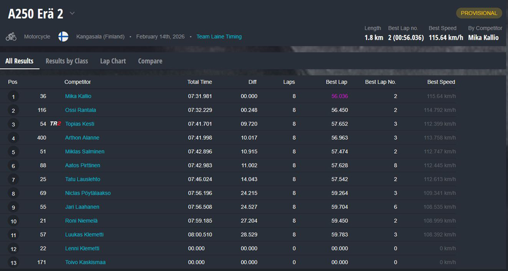 Tuloskatsaus: 2026 Jäärata SM, Seinäjoki