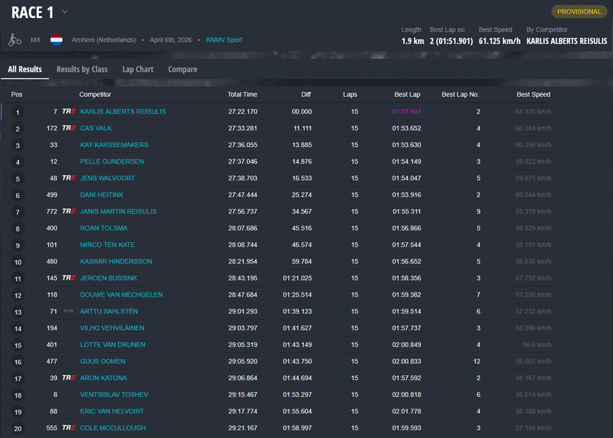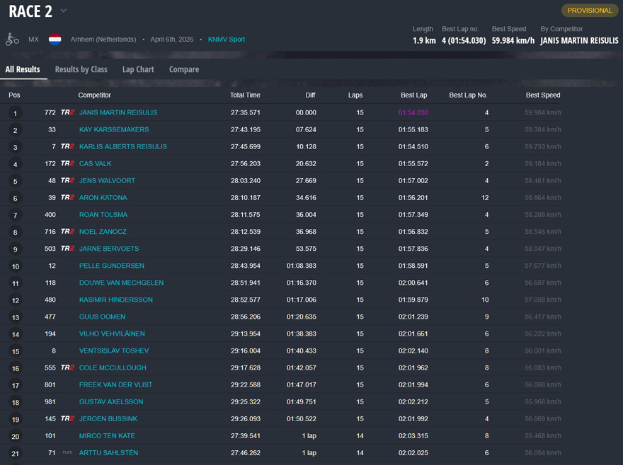Kasimir Hindersson, Arttu Sahlsten ja Vilho Vehviläinen kisasivat tänään Hollannissa. Tässä kisan tuloskatsaus.