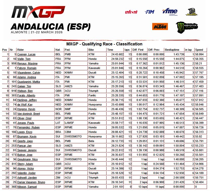 Tuloskatsaus: MXGP Espanja, karsintaerät