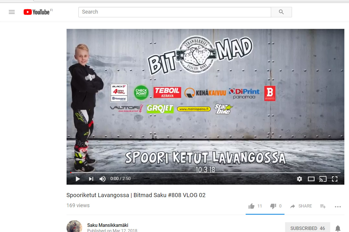 Junioricrossari Saku Mansikkamäki on julkaissut talvisen ajovideon "spooriketut Lavangossa".