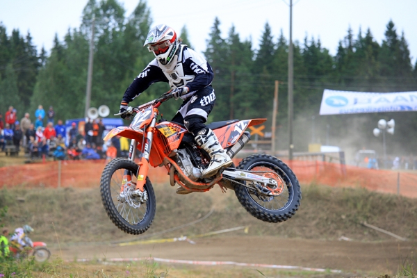 MXJ-luokan Suomen Cupissa Aki Manninen jatkaa johdossa, vaikka päivä ei täysin onnistunutkaan. - Ensimmäinen erä meni piloille lähdön takia ja onnistuin nousemaan sijalle seitsemän. Toisessa erässä en pystynyt vastaamaan Tammisen vauhtiin kärjessä ja ajoin toiseksi, kertoi Manninen palkintokorokkeella.