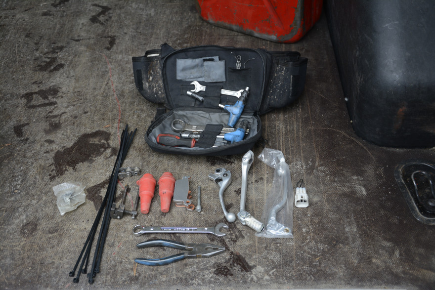 Polkimet, kahvat ja jarrupalat kuuluvat hyvin varustautuneen kuskin vyölaukkuun. Ilmankin niitä voi onnistua nilkuttamaan ongelman sattuessa pois metsästä, mutta pelimies pakkaa ne varalta mukaan.
